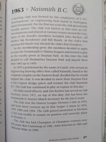 Copnor Bowls Club was originally located at the Copnor Bridge end of Tangier Road (See image ) this club was established in 1914 and celebrated its centenary on 12th June 2014. It was moved in 2007 to its current site to make way for the bridge improvements and was initially "Swordsands Bowling Association" and incorporated Copnor Ladies and Mens teams Naismith and Moneyfields.